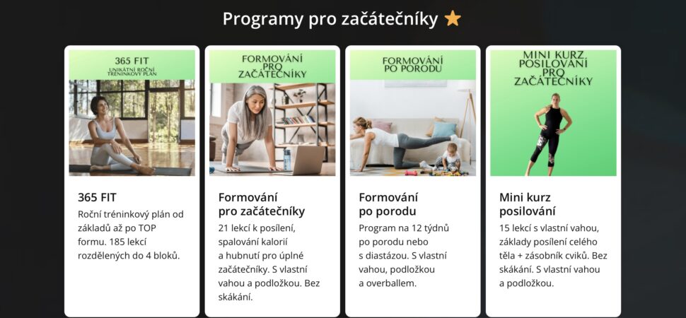 - Výběr máte již nyní z více než 850 cvičebních lekcí a z šesti dietních programů. V rámci členství jsou vždy všechny tréninkové plány - starší i nové.